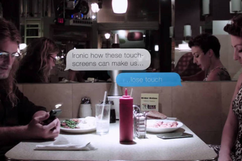 No filme, um protesto silencioso é encenado contra aqueles que não desgrudam de seus smartphones para viver a vida real.