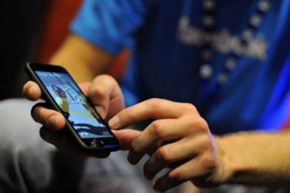 Funcionário do Facebook mostra telefone: "comportamento online dos amigos é uma fonte viável de influência", disse pesquisador (Josh Edelson/AFP)