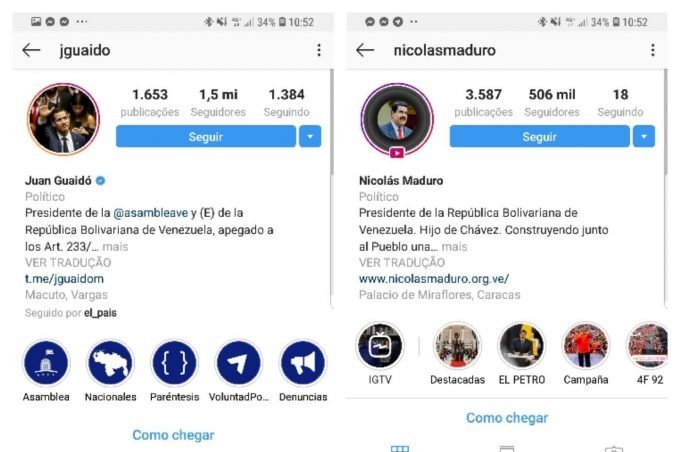 No Twitter – também uma companhia americana – , Guaidó e Maduro ainda têm os selos de autenticidade em suas contas.