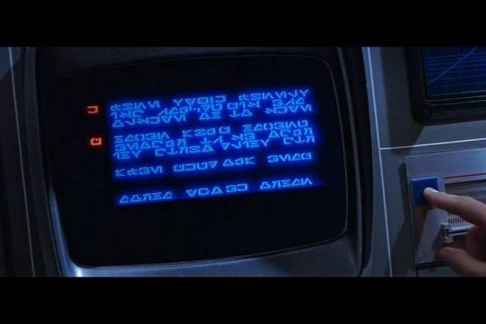 O idioma fictício Aurebesh, da saga de filmes "Star Wars" (Reprodução/YouTube)
