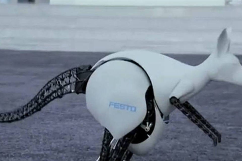 Já vimos robôs-mulas-de-carga, robôs-guepardos e robôs-humanos. Mas que tal algo mais exótico, como um robô-canguru? Pois é isso mesmo que os engenheiros dos laboratórios da Festo criaram. O curioso BionicKangaroo, cujo formato reproduz o do marsupial, é capaz de saltar como animal de verdade, recuperando a energia de um pulo para aproveitá-lo movimento seguinte.