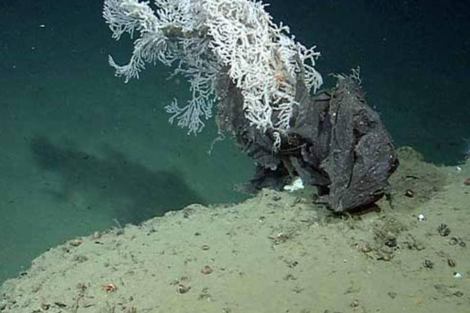 Correntes no fundo do mar envolveram saco plástico em torno de um coral