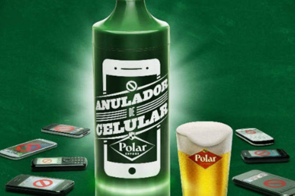 Pensando nessa contemporânea falta de interação social nos bares, a cerveja Polar lançou um porta-garrafa que promete anular o sinal do celular.